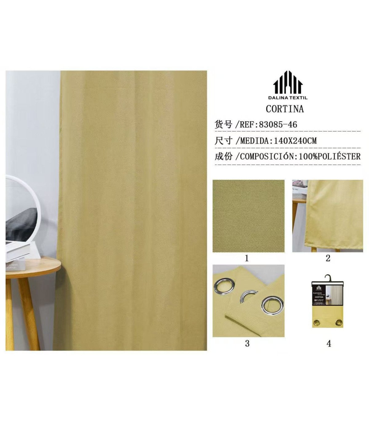 CORTINA OPACA 140X240CM AMARILLO